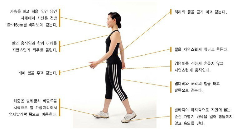 - 허리와 가슴은 가능한 곧게 편 채, 배와 허리에 힘을 주고 긴장을 유지하면서 소리나지 않게 계단을 오를 것